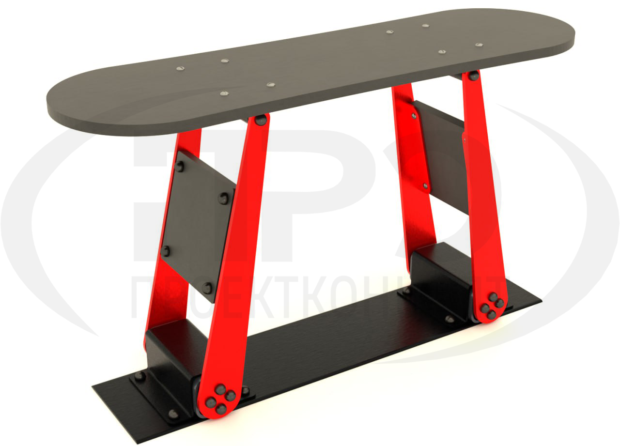 Материалы: металл в порошковом окрашивании, противоскользящая ламинированная фанера, шарнир, оцинкованные метизы, пластиковые заглушки и колпачки.