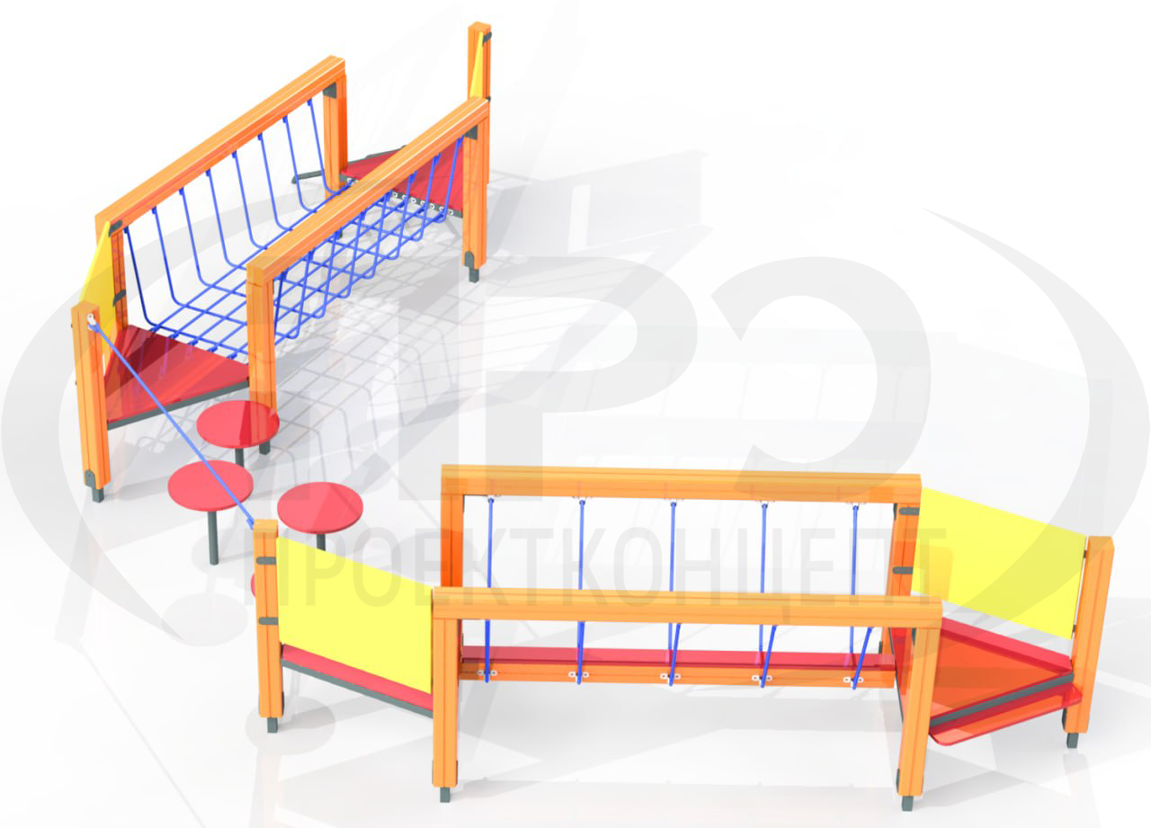Материалы: Металл в порошковом окрашивании, влагостойкая фанера в заводском окрашивании, брус деревянный технической сушки, влагоустойчивая фанера, канат полипропиленовый 16 мм либо цепь круглозвенная, пластиковые заглушки и колпачки, оцинкованные метизы. Цветовое решение по согласованию с заказчиком. Способ крепления — бетонирование.