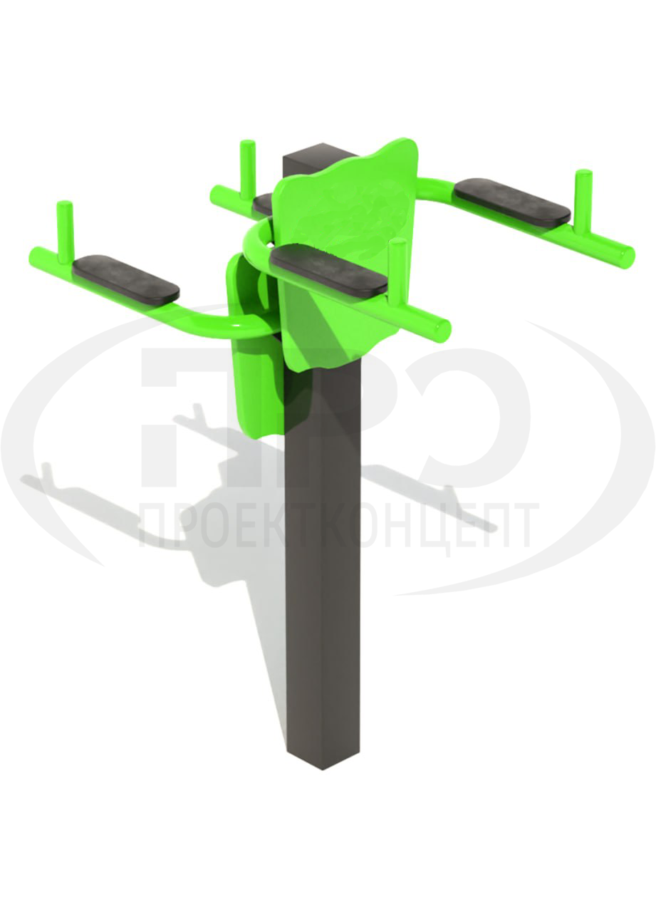 Уличный тренажер «Брусья» предназначен для выполнения гимнастических и силовых упражнений на брусьях по укреплению мышц груди, бицепса и трицепса. В качестве нагрузки используется собственный вес занимающегося. Тренажер двухсторонний, разноуровневый, для одновременного выполнения упражнений двумя лицами.